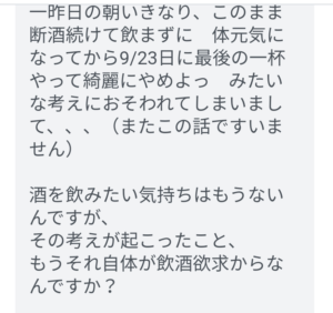 ちゃんとした?飲酒欲求でスリップするなら、まだあきらめもつくかもですが、