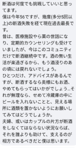 「一度断酒していただけに今回の断酒が前よりしんどいです」