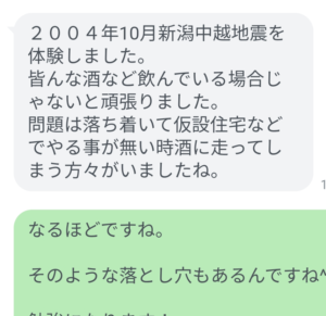 実際に新潟地震を経験された方からメッセージをいただきました。